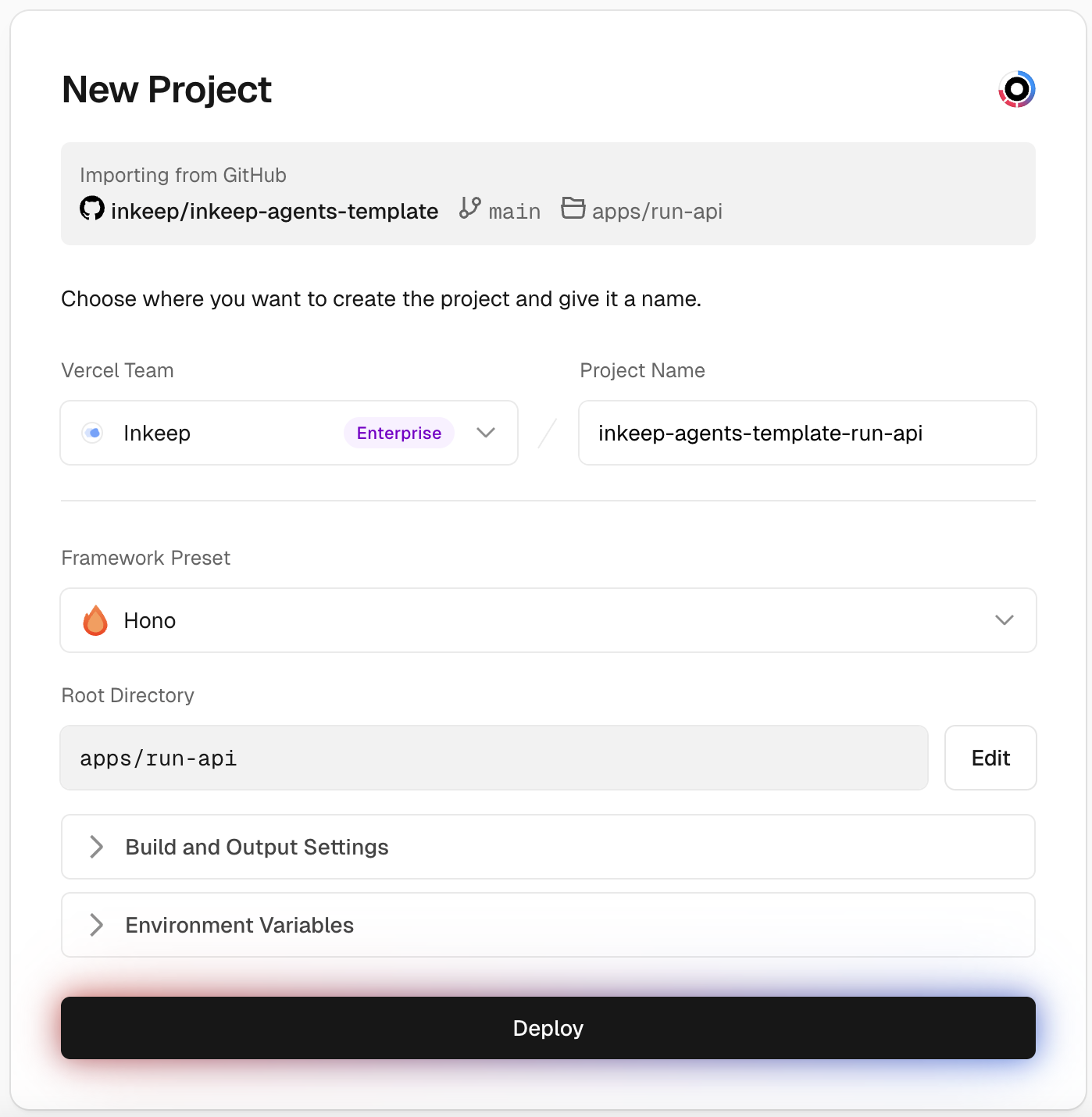 Deploy the Inkeep Agent Framework to Vercel